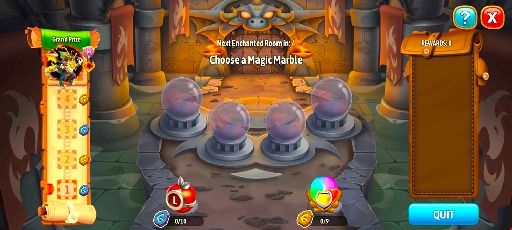Wizard Hollow is a permanent in-game feature in Dragon City unlocked at level 23. It appears as a floating building to the right of your islands. Inside, you’ll face a sequence of 50 rooms. Each room presents 4 Magic Marbles—three contain rewards and one hides a crooked wizard.